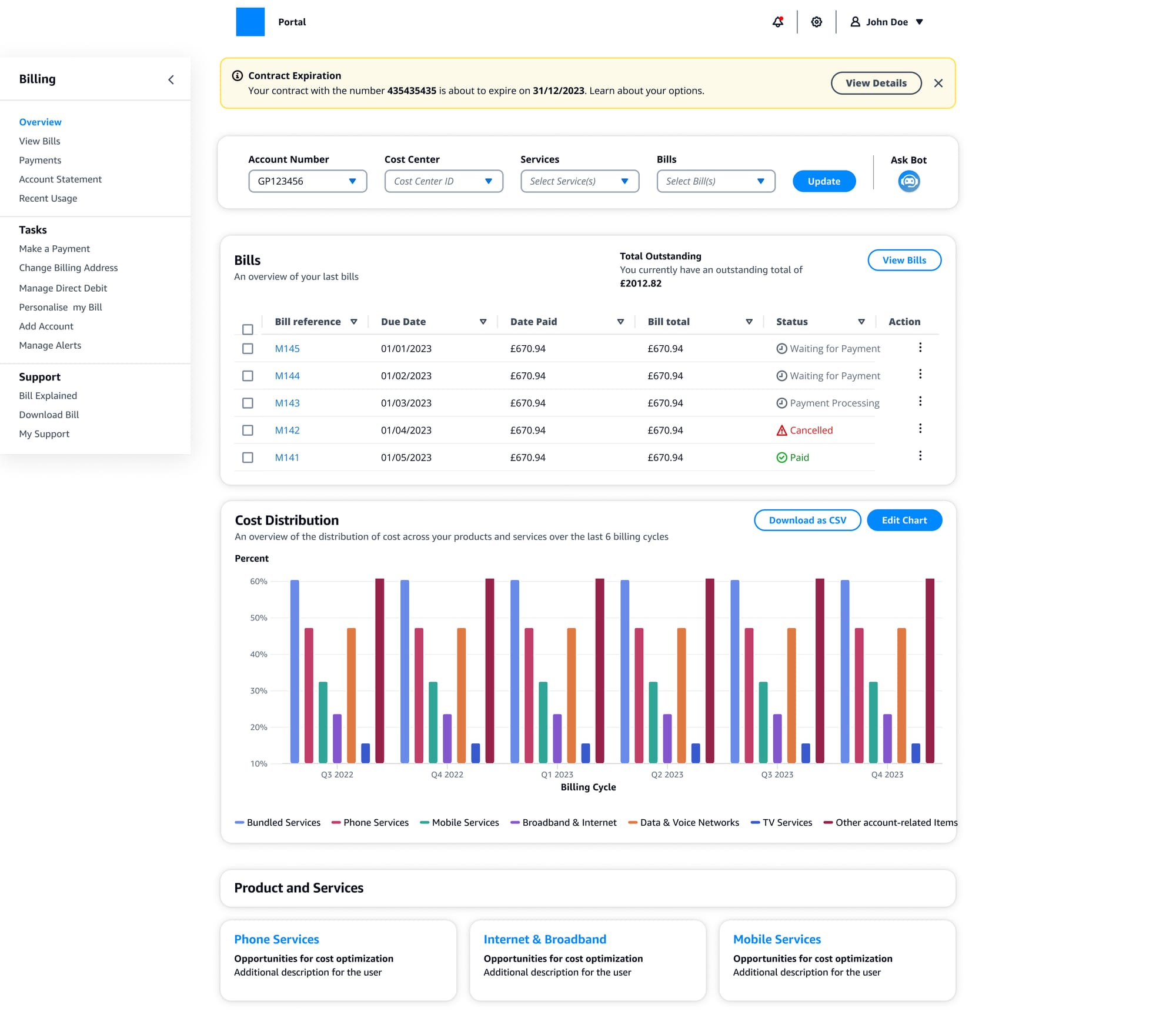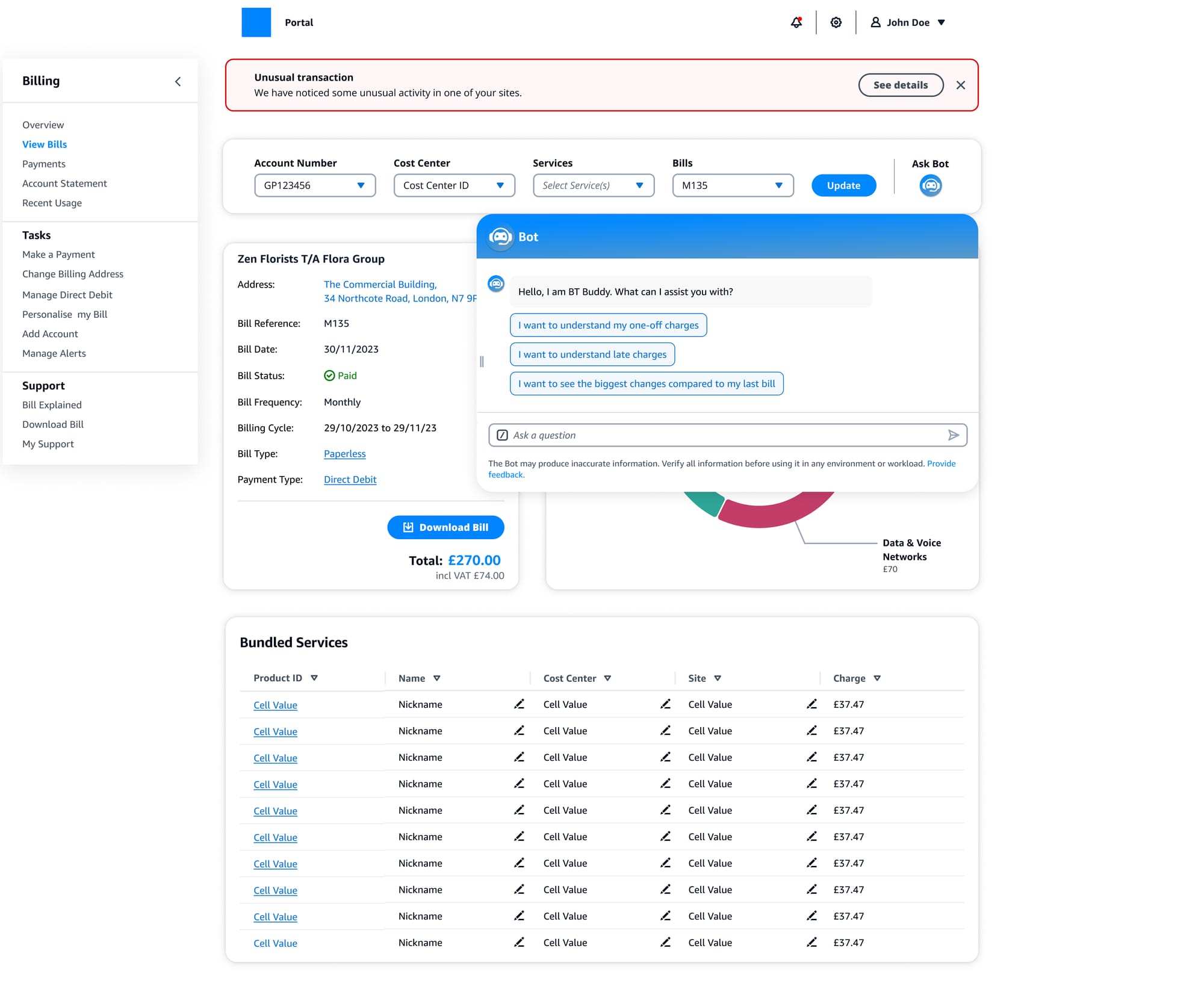 Task: Co-facilitate strategic workshop and design consolidated AI-powered billing portal making digital channels the preferred choice for resolving billing challenges, reducing support costs while enabling revenue growth through better upsell visibility.
