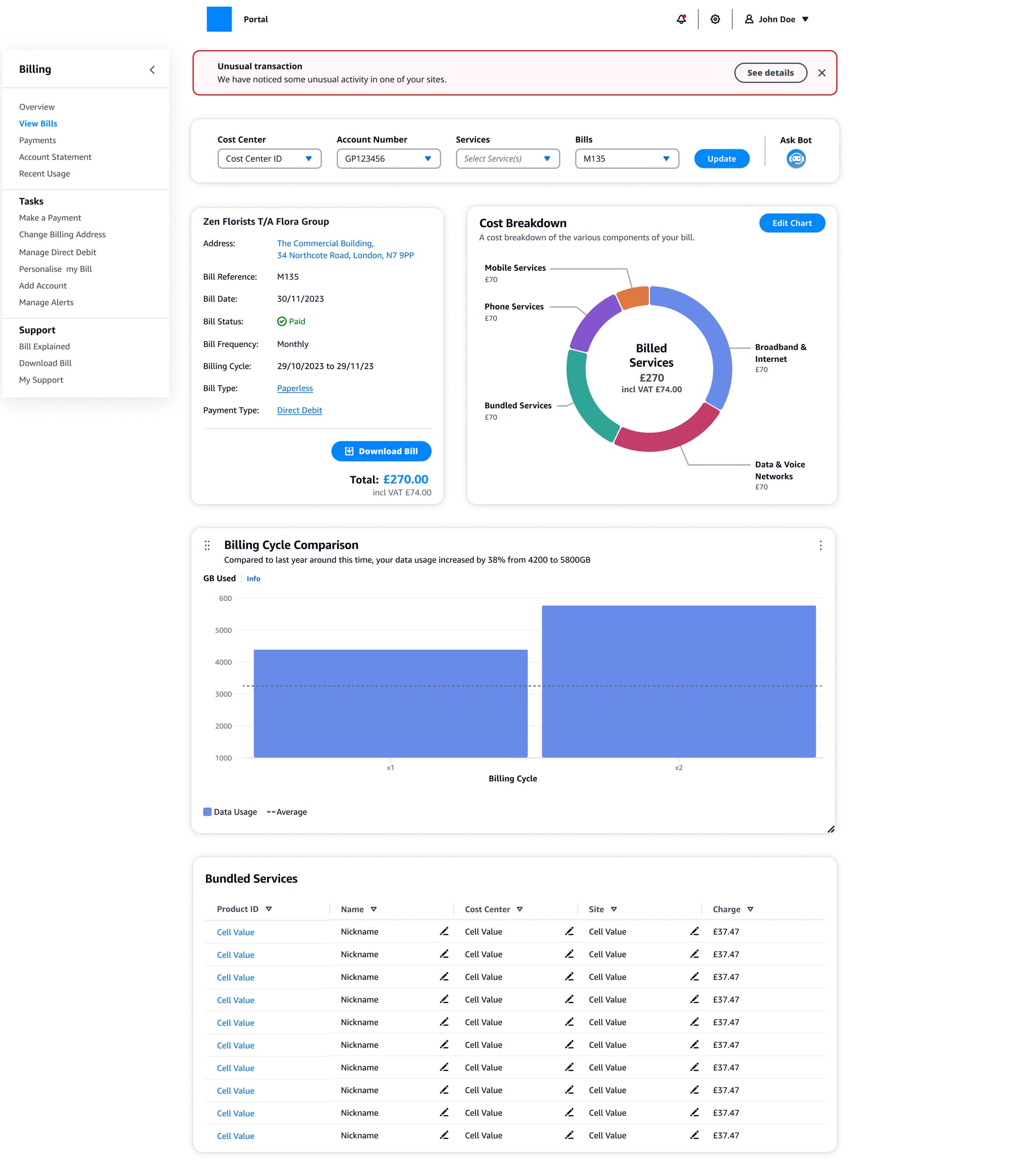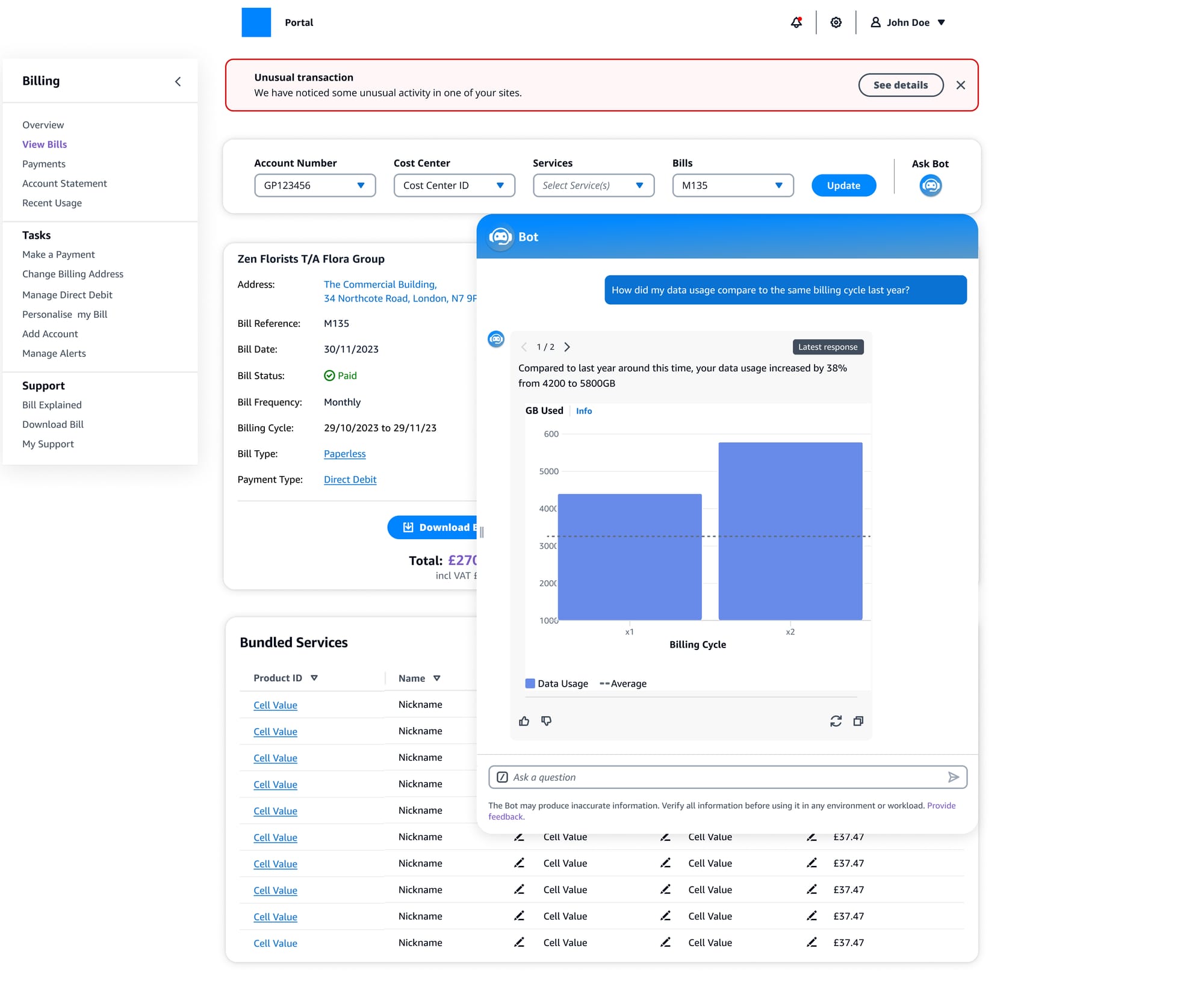 Situation: A leading UK telecommunications provider's fragmented billing systems across multiple portals drove small and medium business customers to costly support channels. Approximately 40% of business customers called the contact center (£2.2M/year in agent time) for issues that could be self-served. Customers struggled to track unrecognized transactions, identify unused capacity, and gain portfolio insights, while agents lacked visibility into customer views.